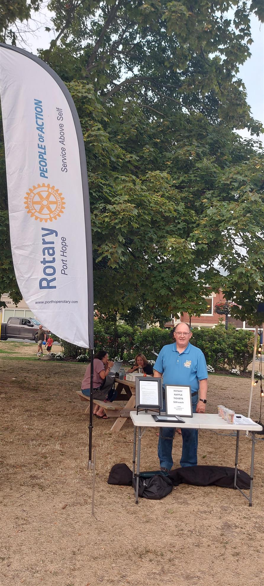 Ron Tuttle selling raffle tickets at Movies in the Park.